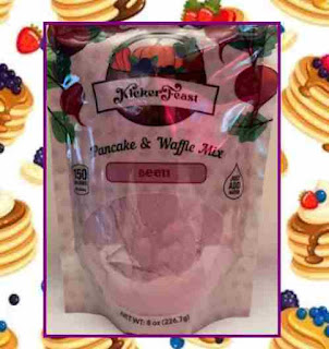 The last pancake and waffle mix from KickerFeast was their beet pancake and waffle mix. Toppings of banana and walnuts make this one a hit. The first-ever time any of us in the family had beet pancakes. Now don't wrinkle your nose, they were amazing. The flavor is unique and very flavorful. And when you serve them, everyone is stunned by their vibrant color. This mix is made with actual beet, which gives it not only color but flavor.